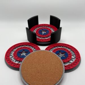 Add a heroic touch to your coffee table with this Captain America Coaster Set! Featuring a bold and vibrant design inspired by Marvel’s iconic superhero, each coaster is crafted with a durable cork bottom to protect your surfaces. The set includes four coasters and a sleek storage caddy, perfect for keeping your space tidy and stylish.