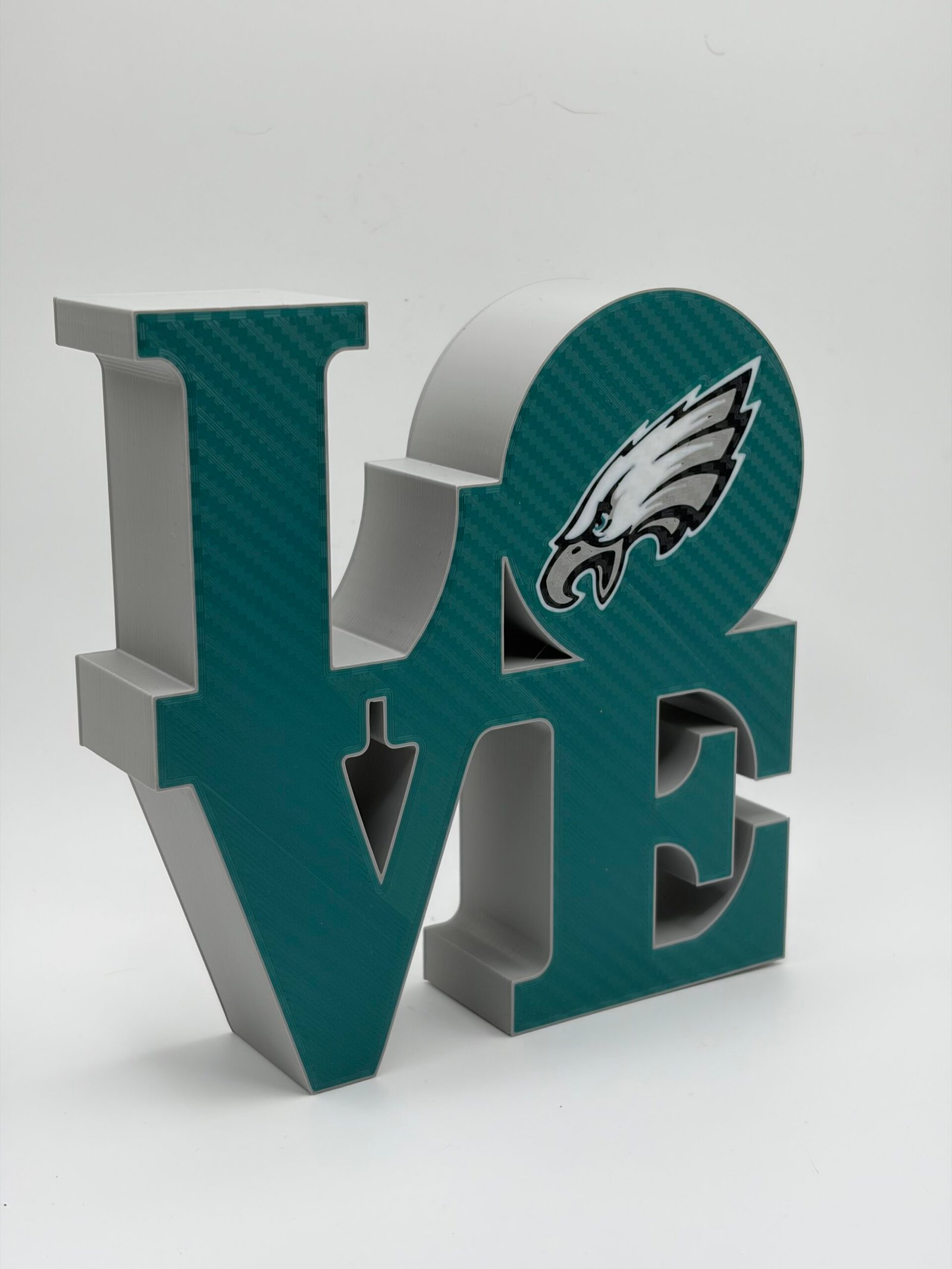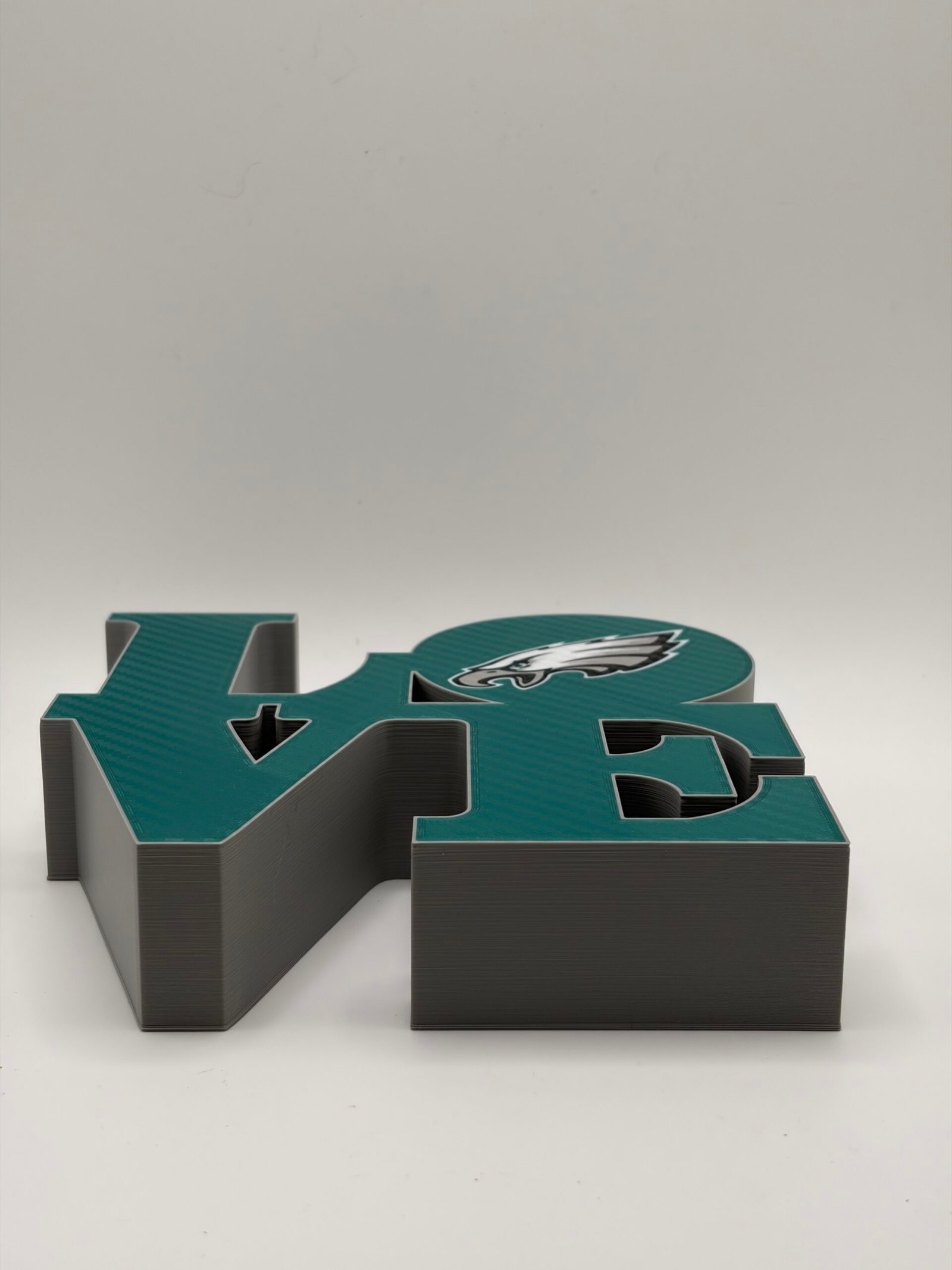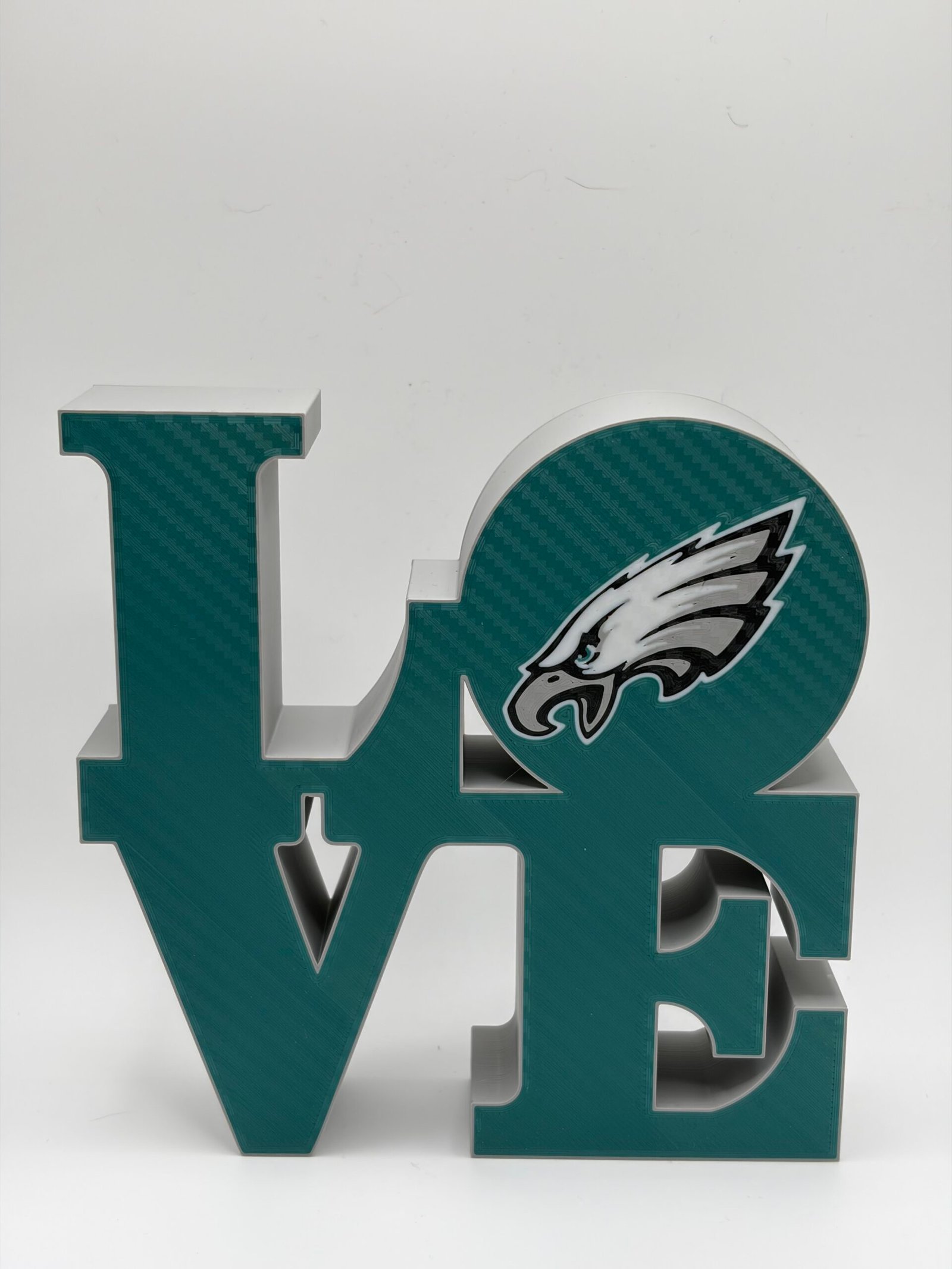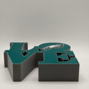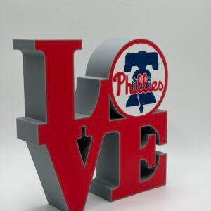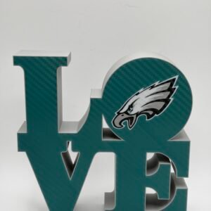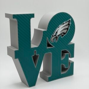 Show your Philadelphia pride with this bold 3D-printed LOVE sign, designed to celebrate the city’s legendary sports teams. Inspired by the iconic LOVE design and reimagined with Philly attitude, this piece features a clean, modern look that fits perfectly in any fan space.